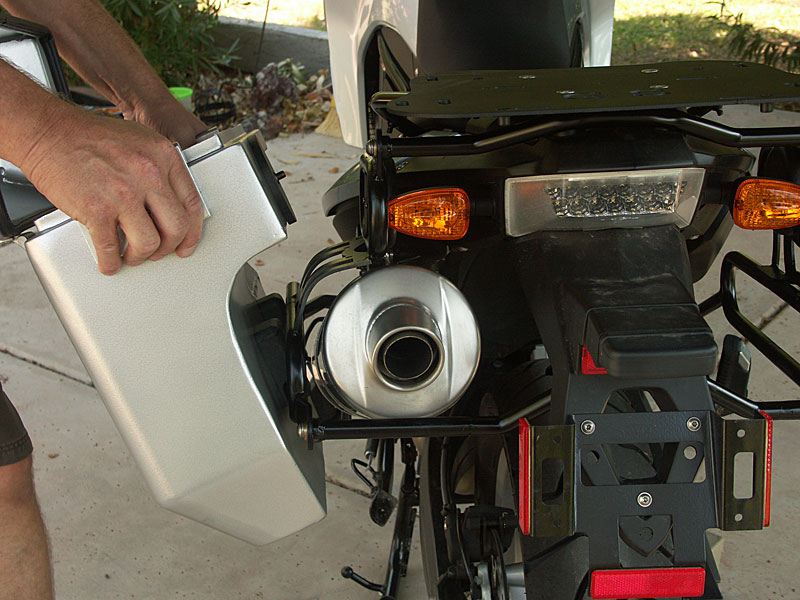 Rear View Safari II panniers fitted with Safari Pizza Box 35 litre Top Box