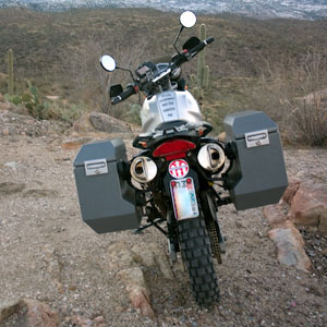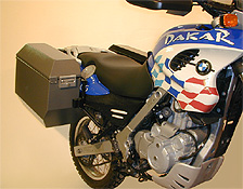 The pictures above show the Odyssey II panniers and mountings with the ability to move the pannier position back and forth for use whan solo or two up