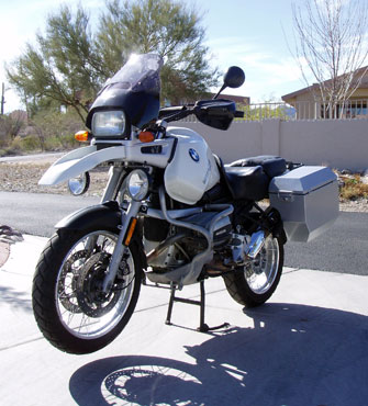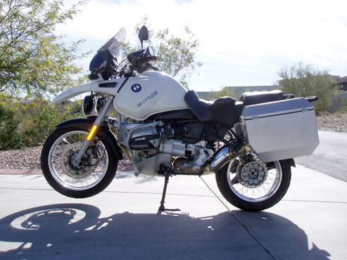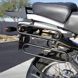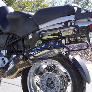 The pictures above shows the R1100GS fitted with Odyssey II panniers and mountings with the ability to move the pannier position back and forth for use whan solo or two up. The R1150GS fitment is the same