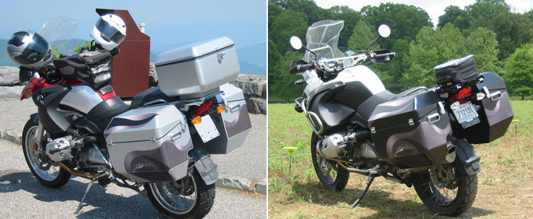 | R1200 fitted wiith Odyssey Panniers, note that the panniers are no wider that the cylinders but have a capacity of 105 litres | ||||||||||||||||||||||||