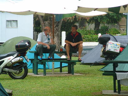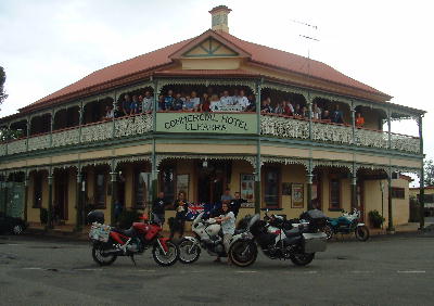 It rained and rained and rained. We took the route via the "Sunshine Coast" - yeah right - it must have seen us coming cos it hid. Reaching Ulmarra we found the hotel that had allowed us to camp in the back garden. There were around 30 people there before us - this would be fun. We rode in and were immediatley inundated with questions, where were we from, where were we going, where had we been..............all started to seem amazingly familiar..........but this is civilisation as we know it - not Pakistan, Iran etc. On arrival it was still raining (actually chucking it down is more appropriate), so we hung out for a while and waited for that - "Right get the tent up quick" moment. |