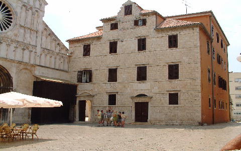 We had a day's rest spent some time on the internet (but still have not resolved our access problems) and did some washing, then the next day we went in to Zadar for a look around, it did not take long to find the Cathedral and convent school where we (there was eleven of us in five trucks and a support vehicle) were recieved and fed by the Arch Bishop of Croatia (despite the gapping hole and blown out doors made by a serb tank) as we stood there looking at the convent school a Priest came out and we had a very good chat, he explained how the school had been repaired and showed us the new doors and how the hole in the wall was repaired but said that after the repairs had been completed in 1999 the convent school had become the new school for Priest's. After that we had a wander round Zadar looking at the bits I remembered then it was back to the campsite for more sun, sea and beer. |