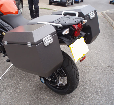 The panniers are made using 2mm aluminium and have an all welded construction which gives them superior strength, they are powder coated to protect them and also to prevent your clothes etc from getting black marks on them. (which bare aluminum panniers will do)