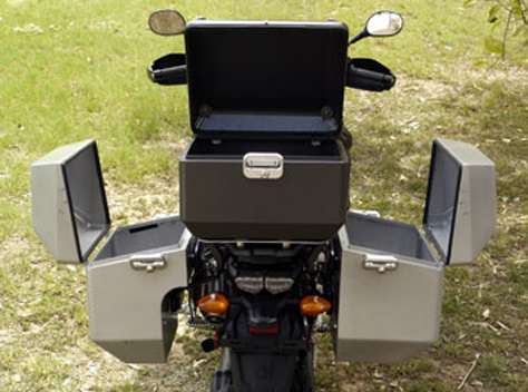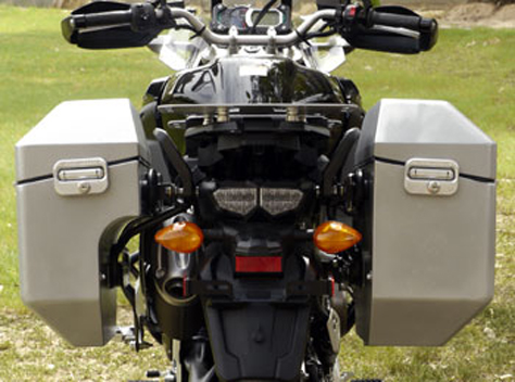 The pictures above and below shows the Super Tenere fitted with the 9" Safari panniers