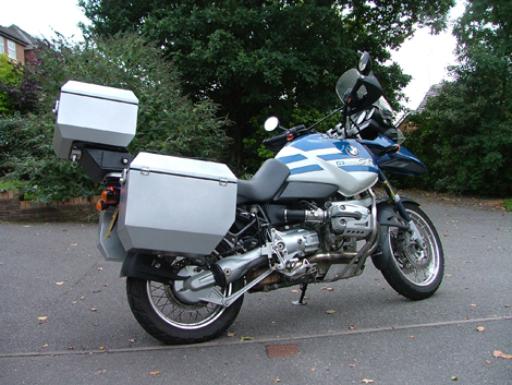 The pictures above below show the 9" Safari II panniers fitted to a 1200GS the panniers are the same and the mounting frames are the same as those shown below