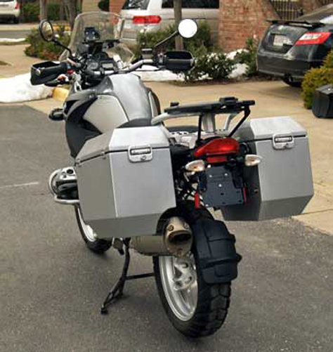 Pictured above is a 1200GS fitted with 10" Odyssey II panniers in the Charcoal finish.