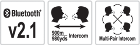 Bluetooth Intercom up to 900 meters (980 yards) in open country