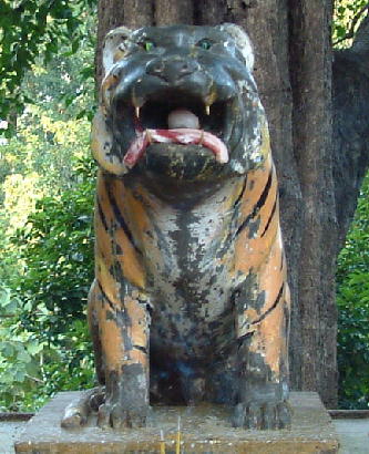From Angkor we went to Phnom Penh (the capital). We stayed two nights deciding that we really ought to visit some of the sights there and it was a good stop point on the way to Vietnam. The city is big but not massive and we didn't get lost !! We decided that we would visit the Royal Palace and Silver Pagoda and leave it at that - off we strolled only to find that the Palace was closed today as there were special visitors !! Ah well, off to Wat Phnom them - another temple but this one apparently stands on the point where Mr Phnom founded Phnom Phen as the new capital of Cambodia (it used to be Siem Reap). We paid our $1 like good tourists and up the mound we went - it was fairly disappointing. The usual golden Buddha, paintings on the walls etc. etc. However, this one had the main Buddha and we reckon about 100 other ones dotted around the place - it looked like a dolls shop at Christmas ! The most interesting part was watching the monkeys in the surrounding trees ;-) That is apart from the Tiger statues that we have not come across before. The devotees place pieces of bacon in it's mouth and an egg ! We watched one man do this - actually cracking the egg into the Tiger mouth - one day we might find out the meaning of it all. | |||||||||||||||