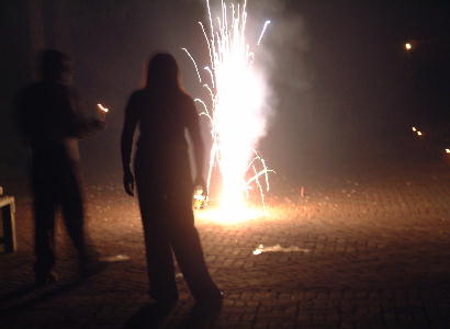 Amritsar also has a Hindu version of the golden temple, It is a little different and not quite so golden but was interesting in its own right. On november 4th the Indians celebrate Diwali, which is the Hindu new year. Now, the Indians use fireworks to celebrate this occassion as we do, plus serious lighting on their houses, however, their idea of fireworks is somewhat different to ours. Pretty and colourful are not great requirements - noise is. The louder the better. Hence, firecrackers were the main weapon. Rockets went up and banged with little light, catherine wheels were set off on the ground - spinning wildly all over the place. But the favourite were lines of firecrackers that you lit one end and it was like machine gun fire and also single use crackers - the idea of these being you lit it and threw it as fast and as far as you could at anyone passing who might jump. There was also a total disregard for any danger involved. As can be seen from the photo below standing too close is unheard of. | ||||||||||||||||