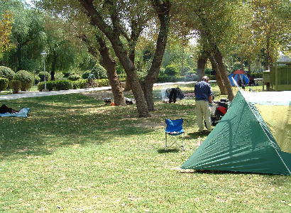 Over the three days that we stayed in the park we had a constant audience, people would sit on the bench's and on the grass and just sit there watching us, there was a constant flow of people wanting to talk to us, many of them just wanted to practice their English, and many of them wanted to know how they could get to Britain. We felt like zoo exhibits and had no peace at all for the three nights that we stayed, and so were glad to leave despite the fact that the people were all extremely friendly, asking whether they could help us at all or did we need anything, offering sweets, tea and food etc. |