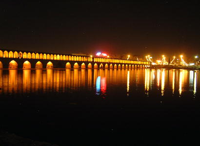 People walking along the side of Si-o-Se Bridge. | ||||||||||||||