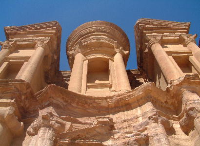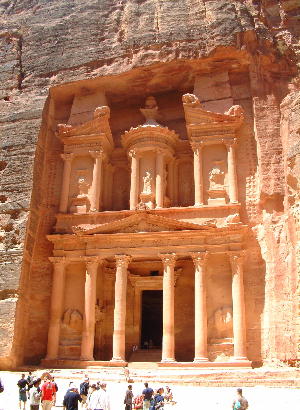 Next morning it was off to Petra. We bought a 2 day pass each as we had been told that we would need 2 days to see it all, also the price for 2 days was little different than one day. We trekked down to the entrance of the Siq - this being the beginning of a 1.2 km long gorge ranging from 1 to 3m wide. At the end the sight of the Treasury just showing through the end of the Siq was amazing. We were faced with a carved building approximately 40 m high with rooms in the rock face itself. It was like being put into a film set - in fact Petra is where some of the filming for Indiana Jones and The Temple of Doom was filmed. Having watched the film we were a little disappointed that all of the tombs and the Monastry consisted of only one room and not the huge complexes we had expected. From the Treasury you walk down the Street of Facades and on to the tombs ( around 7 in total ). From there along the Street of Columns towards the Monastry. The Monastry turned out to be about 2 km away all uphill, apparently 800 steps, blimey this was a killer ! Finally we got there and it was worth the hike as this was probably more impressive than the Treasury at the beginning. We managed all of this in one day so did not return the following day - mainly as it is a 2km walk before you get anywhere near the beginning of Petra itself. Had we not seen so many rock formations, tombs cut into rocks, houses carved out of rocks to date we may have been slightly more impressed with Petra but would recommend it if you are in Jordan. |