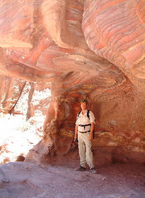 We arrived in Petra quite early which gave us the unusual chance of being a bit fussy about accomodation. We had been recommended one hotel by the last place we stayed but had also heard of the Valentine Hotel - a favourite with backpackers. Unfortunately the Valentine had no rooms left so we decided to try the Petra Gate ( another recommendation ). After trying the bed out and deciding that the mattress ( well foam ) was too hard for Cliff we tried the Peace Way Hotel across the road. Nice beds etc so we asked the price - 50 Jordanian Dinars a night - WHAT ?? Then he came down to 30 and finally settled on 12 a night - amazing what they will try if they think they can get away with it !