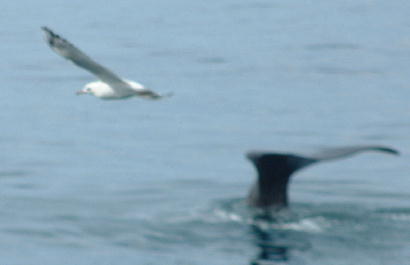 Sperm whale (honest it is) going for the dive as an Albatros flys over (yes really) | ||||||||||||||
