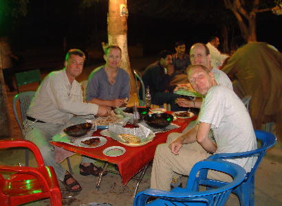 We left Fort Munro quite early, the first one hundred kilometres were quite hard and slow though better than the previous two days, and we finally made it to D G Kahn. We had decided to try and cover five hundred kilometres and stop for the night in Khushab, by three o clock we had only 125 kms to go and we were thinking that we would manage it ok, then the road turned to gravel and dirt for a few kms, once we were through this we rode into a sandstorm and had to cope with soft sand that had been blown across the road, we finally found a dump of a hotel in Khushab at about 7.30pm, after getting them to clean the rooms we showered (cold water only) and ordered some food, Then the Police arrived, we were all in a pretty bad mood and were all tired so an arkward police chief and his underlings was not what we needed but he insisted on seeing our passports he wanted to know where we had come from and where we were going, It took some time to convince him that we had come from Fort Munro that morning, the tempreture was now starting to rise ! , then the Policeman decided that he was going to leave the hotel with our passports, the tempreture was now at boiling point as Cliff blocked the coppers path and then as he tried to step around him Cliff got hold of him and stepped him back a couple of paces and insisted that there was no way that he was going to leave with our passports, thankfully a compromise was reached and we all left with our passport in the Police pick-up to go and get photocopies from a bookshop. | |||||||||||||
