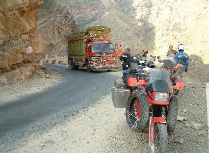 Islamabad, think of Milton keynes and then add Asian chaos and then you will know all about Islamabad. In Islamabad our little group was to split up as Sean and Adrian were on a shorter schedule than the rest of us so they wanted to get from Islamabad to Gilget in one day, this we did not think they would achieve as 650 kms in one day in Pakistan is very difficult, especially on the Karakoram highway. Maarten and Cliff agreed on a route to Murree, Cliff wanted to go to Abbotabad and then up the Karakoram but Maarten wanted to go up to Muzaffarabad and then join the Karakoram at Mansehra. It sounded like a good idea at the time as there was a red Fort on this route that might be interesting, so Maarten , Andreas and ourselves would stay together for a few more days as we headed up the Karakoram Highway. |