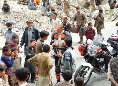 Once in Gilget we rested and looked around the place, then it was time to head for the Chinese border, the day started badly as Cliff and Andreas argued over breakfast, frustration and tension had been building for a while and when Andreas argued over about 20 rupees Cliff lost his temper, nuf said. So we left Gilget with Maarten and headed for Sost, we had done only fifty miles when we came upon a road block, this was because the locals were on strike due to the lack of electricity in the northern areas of Pakistan, after sometime at the roadblock we decided to turn back a few miles and go to a hotel for tea, there was also talk of a diversion that we could take. | |||||||||||||||