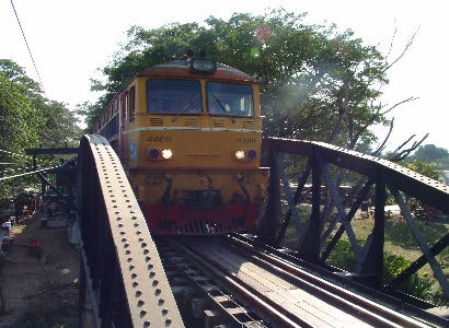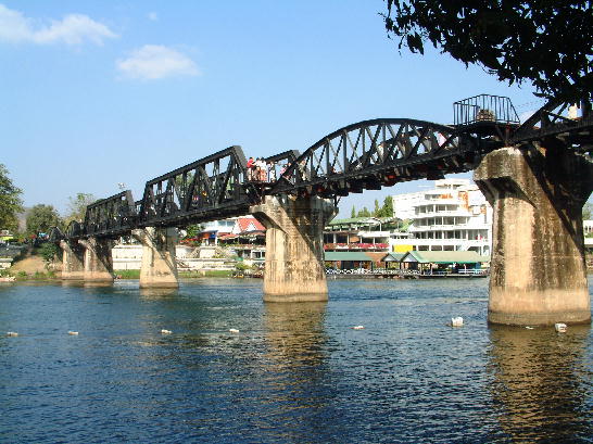 The next morning we left Nakhon Sawan and headed for Kanchanaburi, the route was mostly flat and dual carrageway, Not very exciting, but you can really cover the miles on roads like this. Kanchanaburi is where the Bridge over the River Kwai was built, So it is a busy tourist town with plenty off historical places to visit, we arrived in Kanchanaburi and went straight upto the bridge for a look, this was in part because one of the recommended places to stay was very close by. We started to walk across the bridge and when we got to about half way a Train appeared, so we stood to one side on the platforms that have been fitted for tourists like us and watched as the train came by at just about walking speed before stopping in the middle of the bridge | |||||||||||||