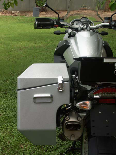 Pictured above and below is a 1200GS fitted with the new 11 1/2"" Safari panniers. Note the panniers shown above are prototypes and will have the same locks and handles as shown on the 9"panniers